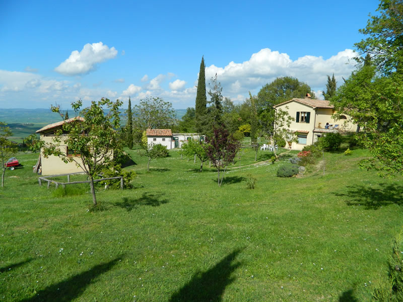 The garden, rich in bushes, plants and fruit trees overlooks an outstanding panorama in which you can distinguish Pienza, a perfect example of a Renaissance town.