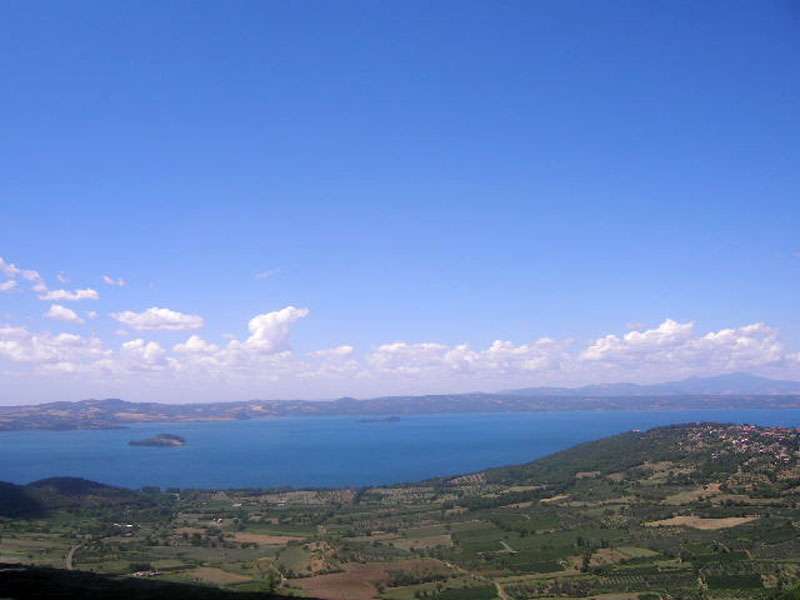 You reach the Bolsena Lake in less than one hour. A volcanic lake: beaches, clear water and the surrounding countryside. On the shore you will find many "trattorie" where you can taste the "coregone", a tasty freshwater fish, accompanied with a good farmer's wine from this area you create the right atmosphere... just as the German bishop Johannes Defuk, on his way to Rome on behalf of the coronation-ceremony of Henry V, here found this wine Est Est Est..!! As the tragic story tells, he never left this place again. Not far away from here is Orvieto.